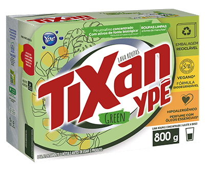 Take care of your clothes and Nature with Tixan Ypê Green powder detergent! This product combines efficiency and sustainability, with a formula focused on reducing synthetics, petrochemicals¹, and environmental impacts.