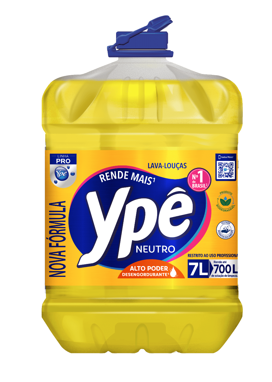 A clássica linha de detergente Ypê agora na versão Pro para uso institucional! Sua fórmula foi desenvolvida para oferecer um maior rendimento com eficiência de limpeza, gerando economia real para o seu negócio.
