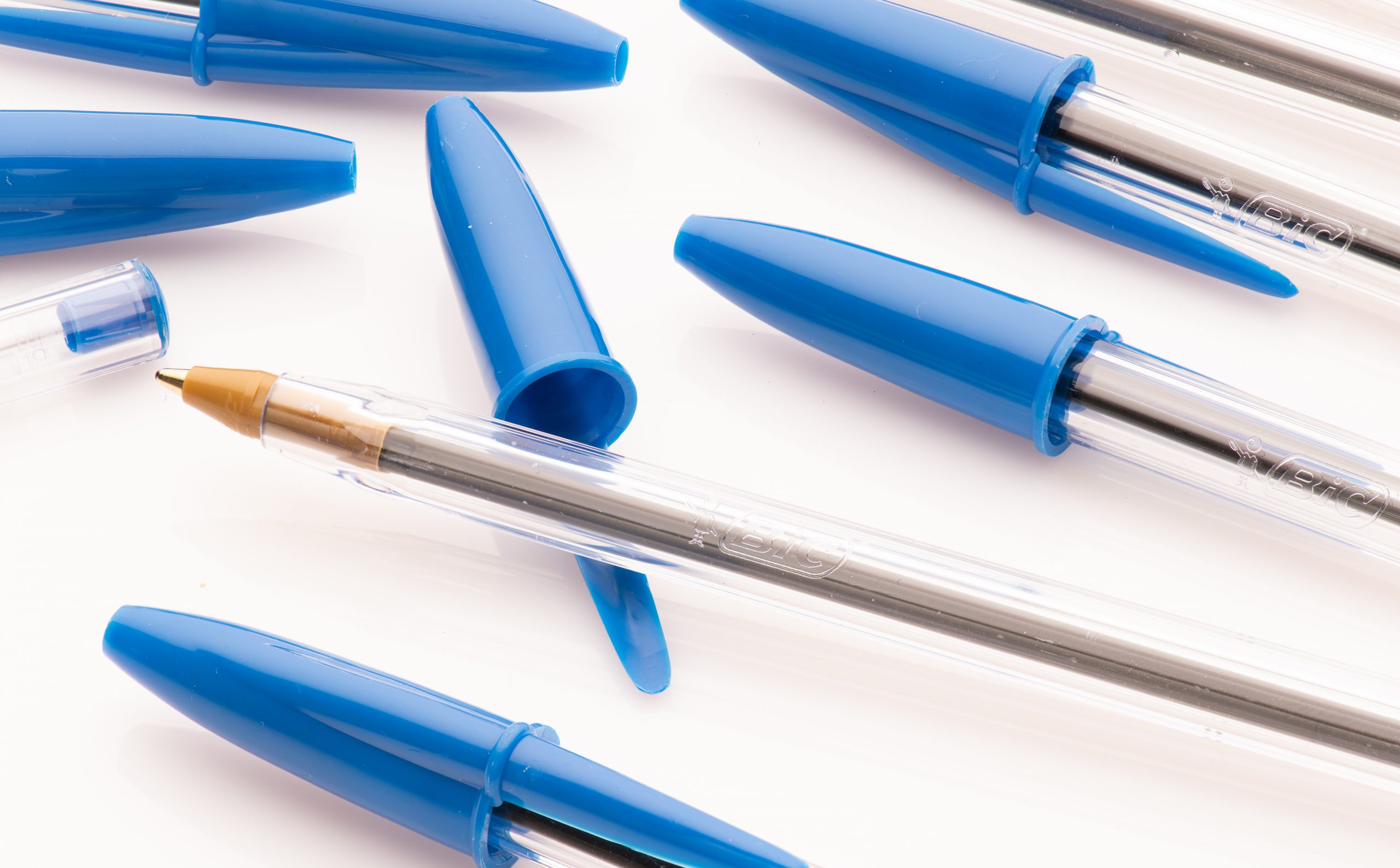Se a tinta da caneta for diluível em água, você só precisa disso e de um produto de limpeza simples, como o Multiuso Ypê Premium – versão tira manchas.